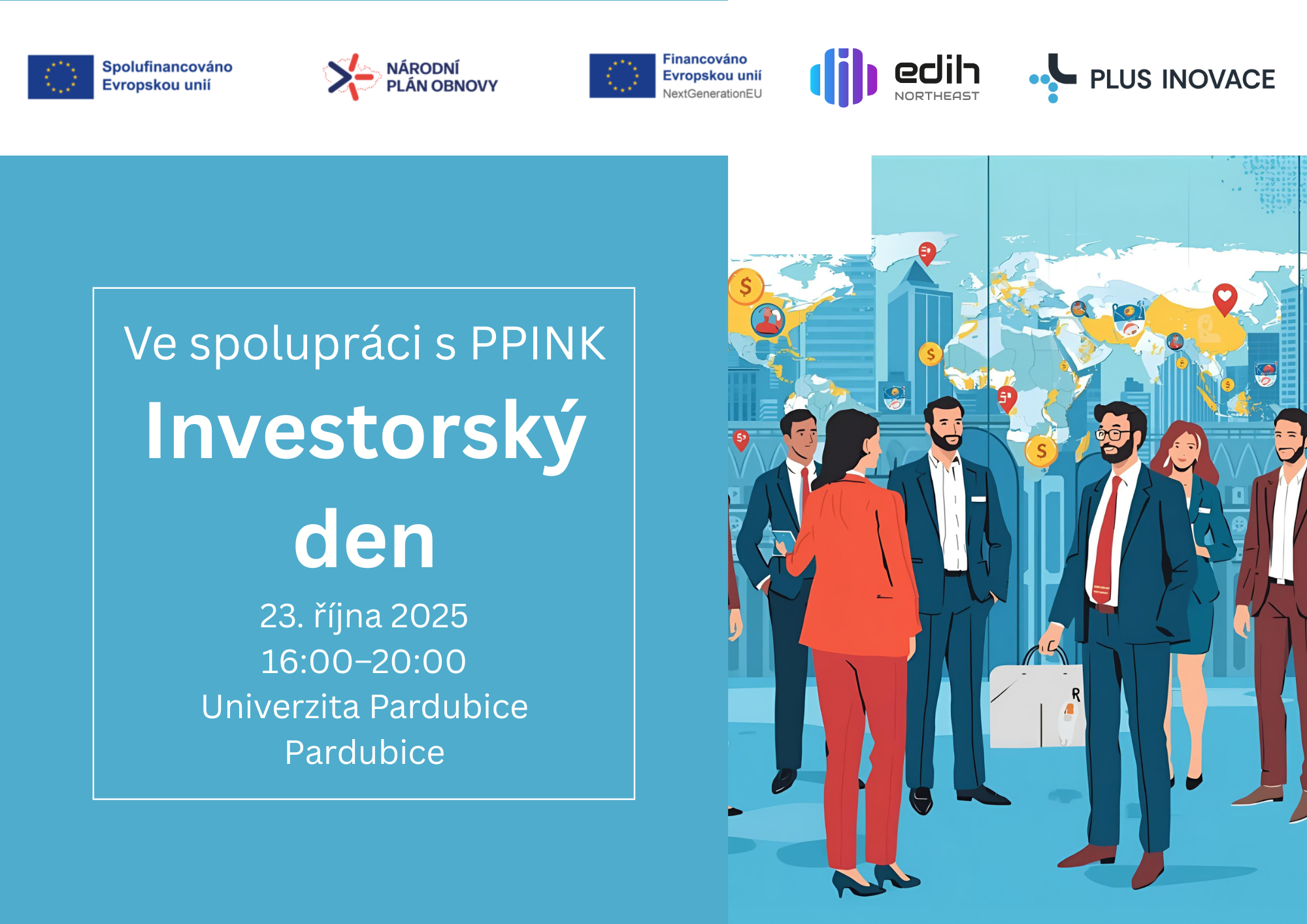 Investorský den pořádáme spolu s P-Pink v rámci projektu EDIH Northeast Bohemia, který propojuje inovace, technologie a podnikatelskou praxi.