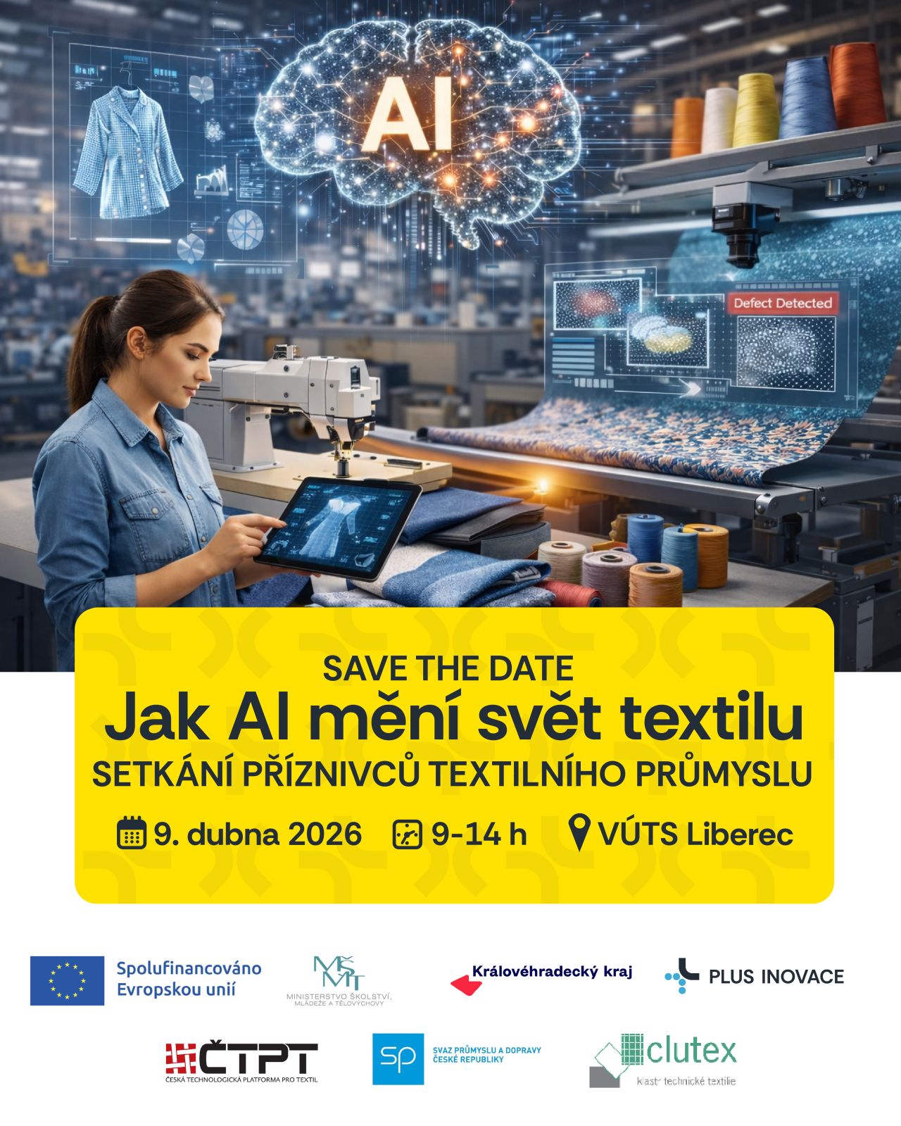 Akci připravujeme spolu s Svaz průmyslu a dopravy ČR / Confederation of Industry CZ, ČTPT - Česká technologická platforma pro textil, z.s. a CLUTEX - klastr technické textilie, z.s.