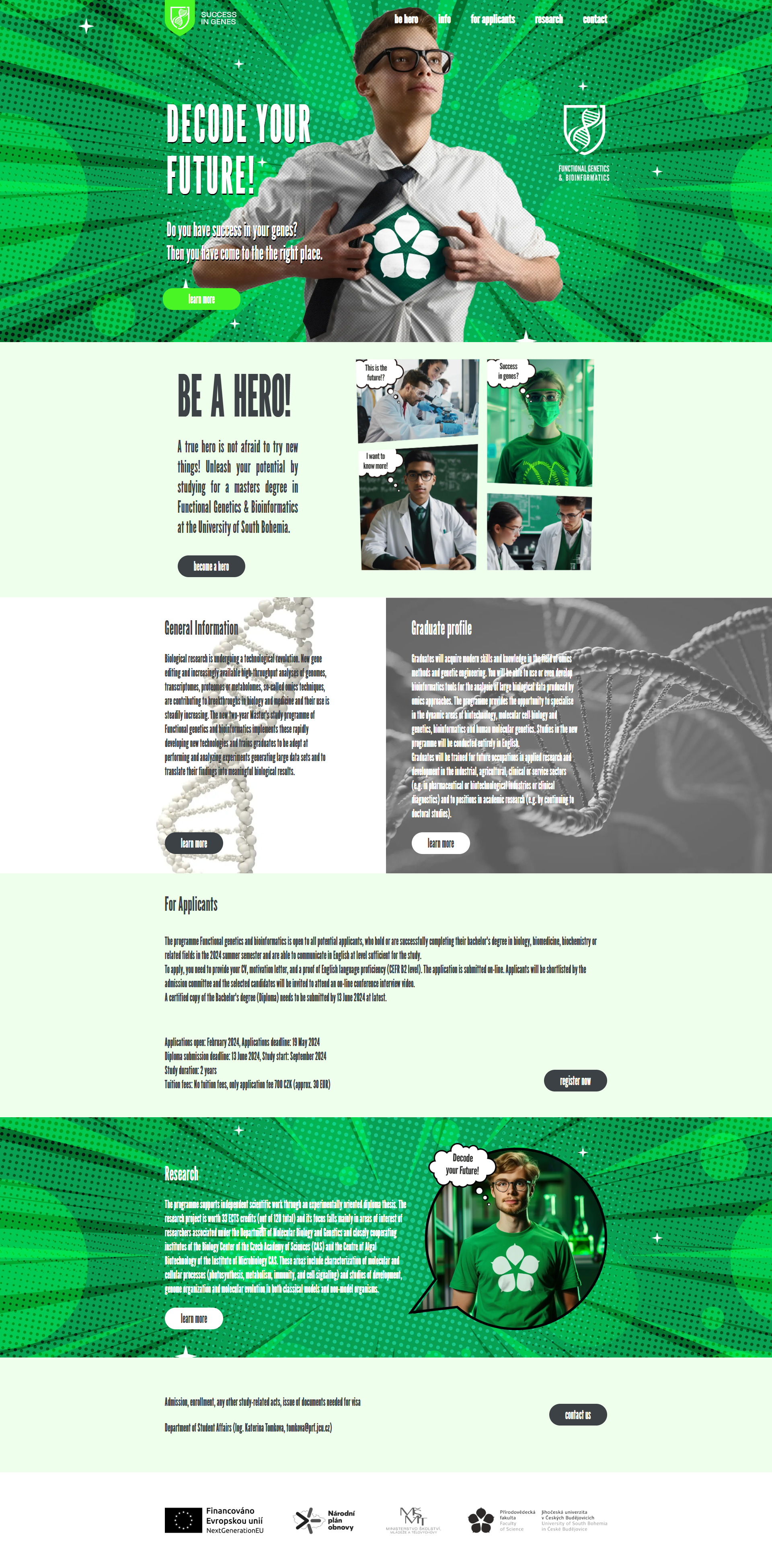 – návrh a realizace webového rozhraní pro mezinárodní studijní program Gentiky a bioinformatiky včetně napojení na marketingovou komunikaci a kampaně. www.successingenes.education