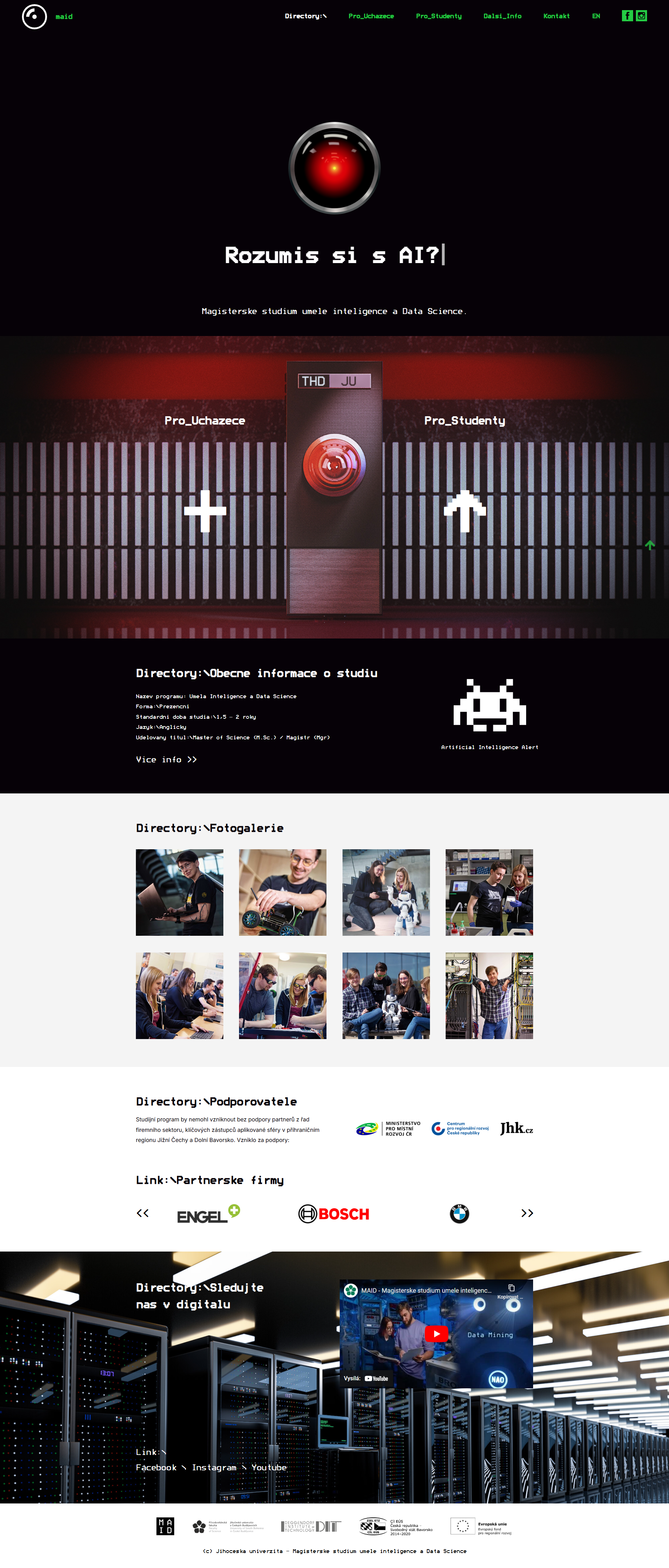 – návrh a realizace webového rozhraní pro mezinárodní studijní program Umělé inteligence včetně napojení na marketingovou komunikaci a kampaně. www.maid.education